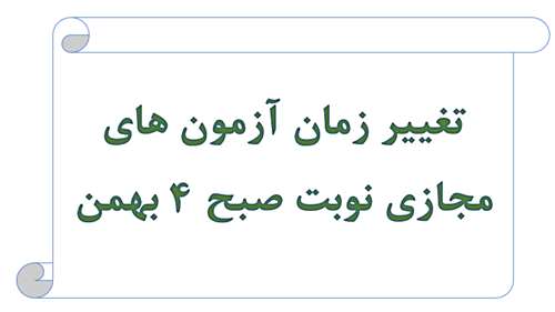 همچنین، امتحانات مجازی ساعت 10 صبح روز شنبه 4 بهمن به ساعت 10 صبح روز پنج‌شنبه 9 بهمن منتقل می‌گردد.