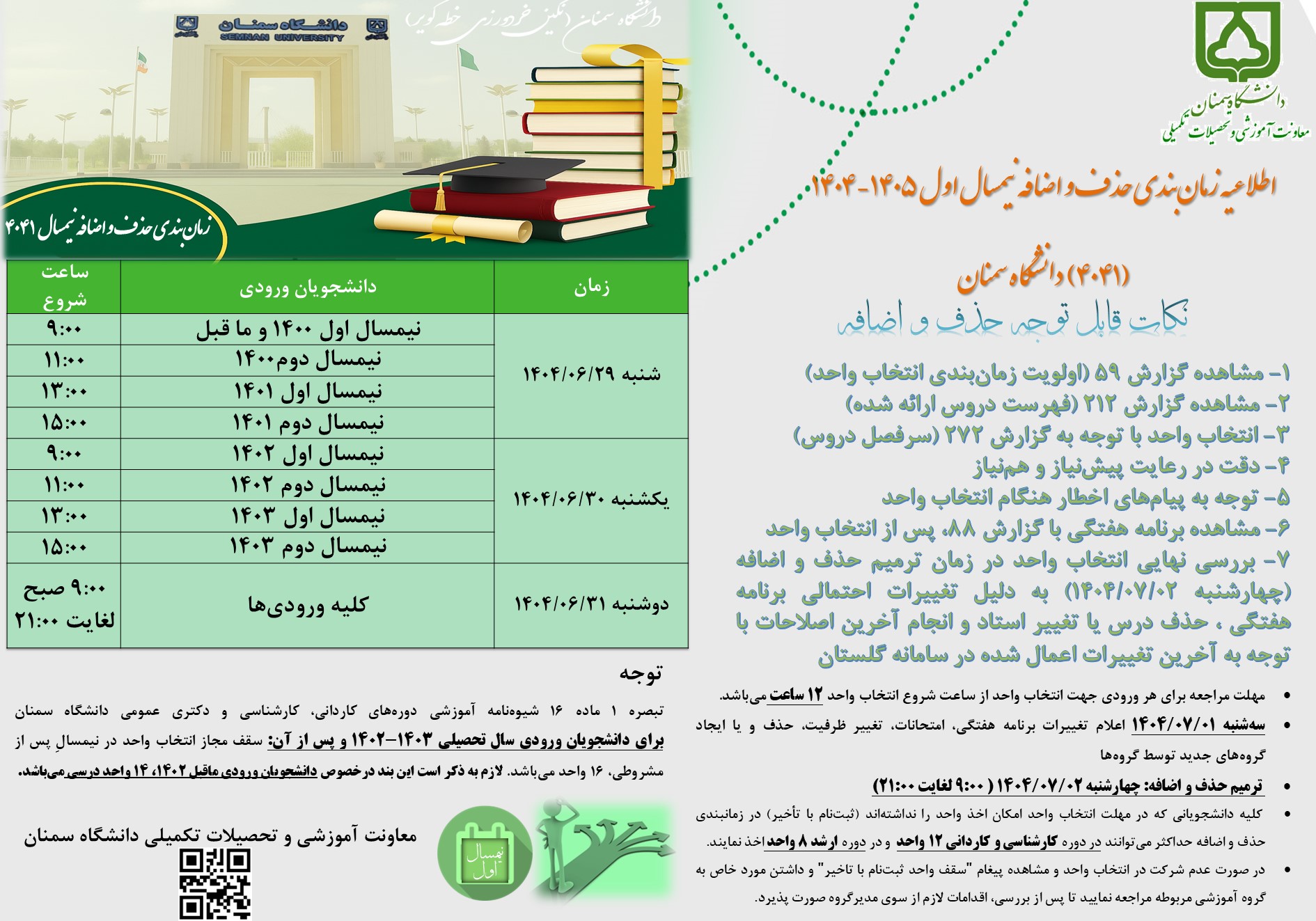 اطلاعیه زمانبندی حذف و اضافه نیمسال 4041